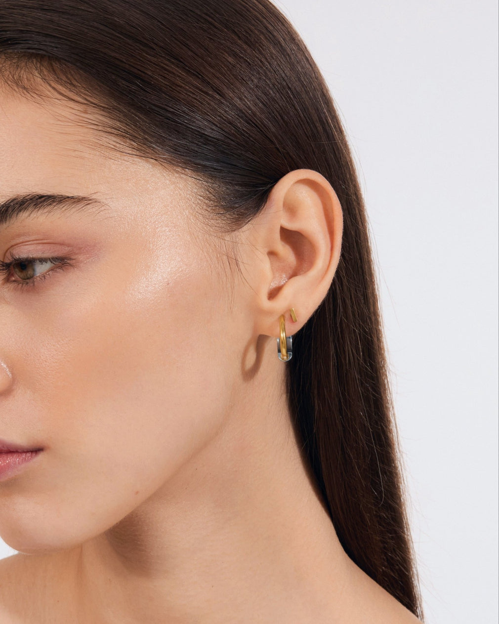 Our Minimal Bar Flat Back Studs in Gold are the quiet essential in any stack. A slim bar shape with a polished finish that looks clean in the lobe, helix or conch.