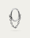 Our Chain Detail Piercing Hoop in Silver adds movement to a clean stack. A smooth, minimal hoop in polished titanium, finished with a fine chain that catches the light without feeling loud.