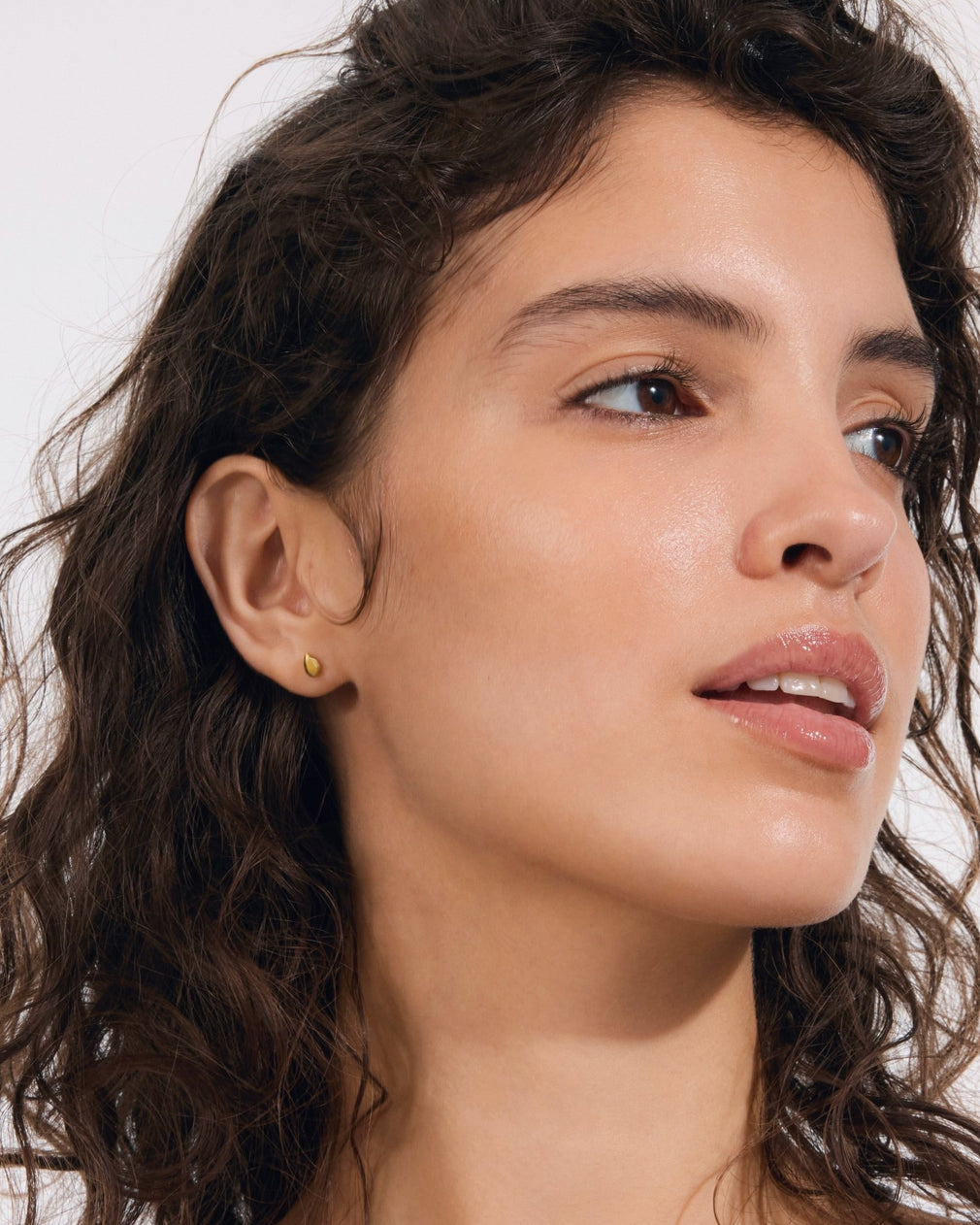 A smooth teardrop stud with a clean gold finish. Threadless flat back for secure, 24/7 comfort. Crafted from implant-grade titanium for sensitive ears.